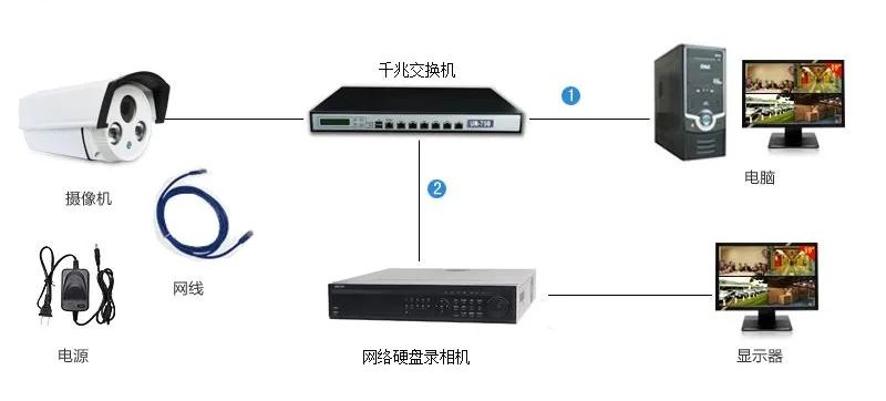2、點(diǎn)對(duì)點(diǎn)傳輸如果多個(gè)攝像頭比較集中,可以把攝像頭連接交換機(jī)
